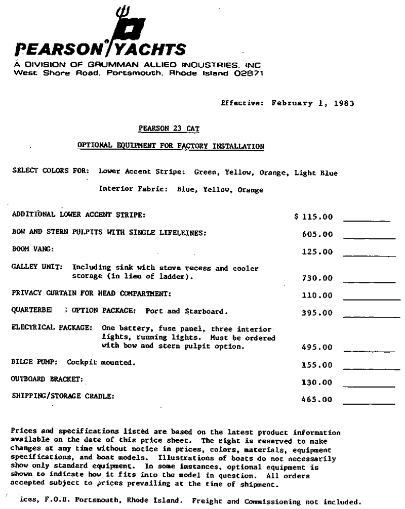 Sail more easily, more often. Take one swift, simple Pearson 23 cat.
