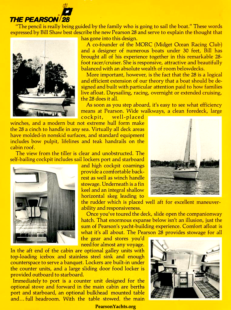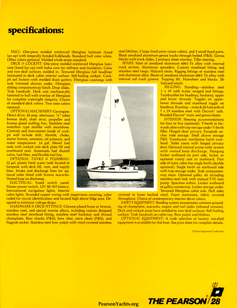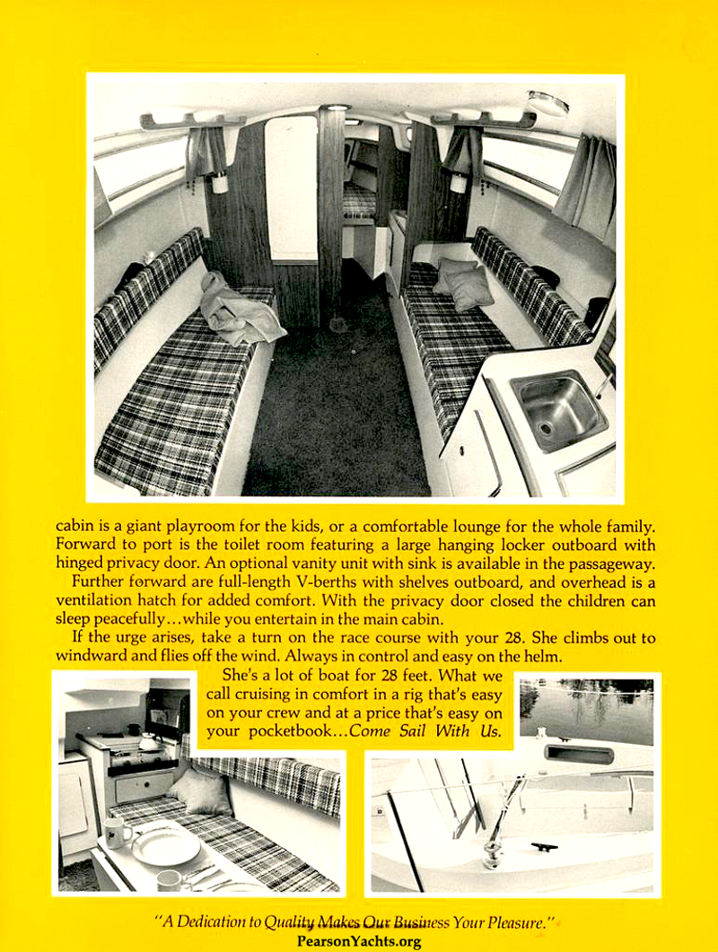 We look at it this way. The Pearson 28 will probably not be your last boat. And we want you to "Come Sail With Us"... for years to come.