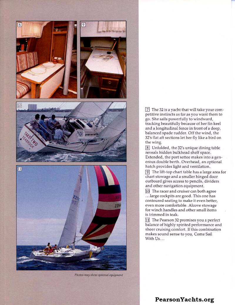 If your sailing pleasure combines the excitement of club-level racing with relaxation of cruising with family and friends, the 32 is right for you. Come Sail With Us...