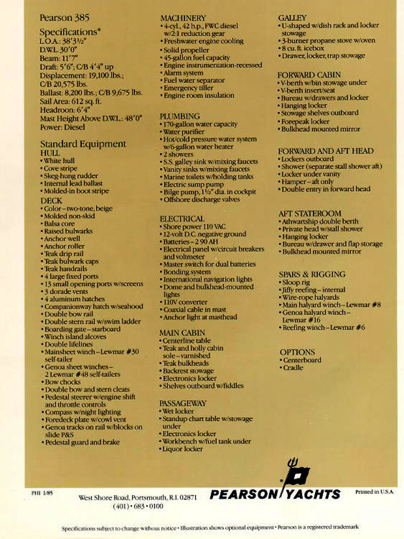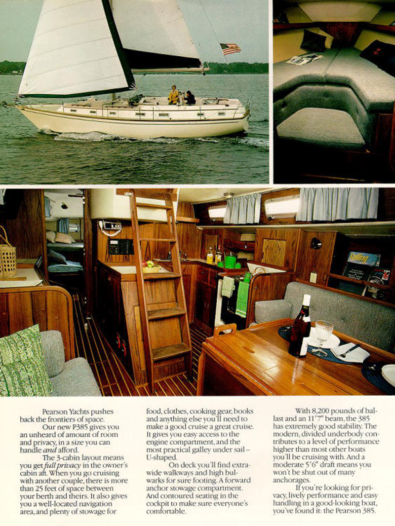 Pearson Yachts pushes back the frontiers of space. Our new Pearson 385 gives you an unheard of amount of room and privacy, in a size you can handle and afford.