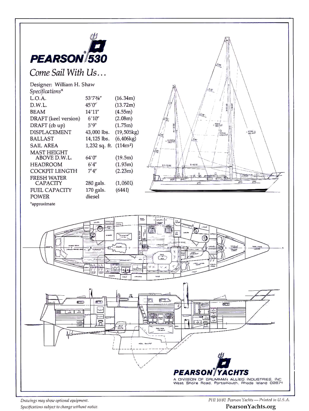 | *approximations from Pearson Yachts |