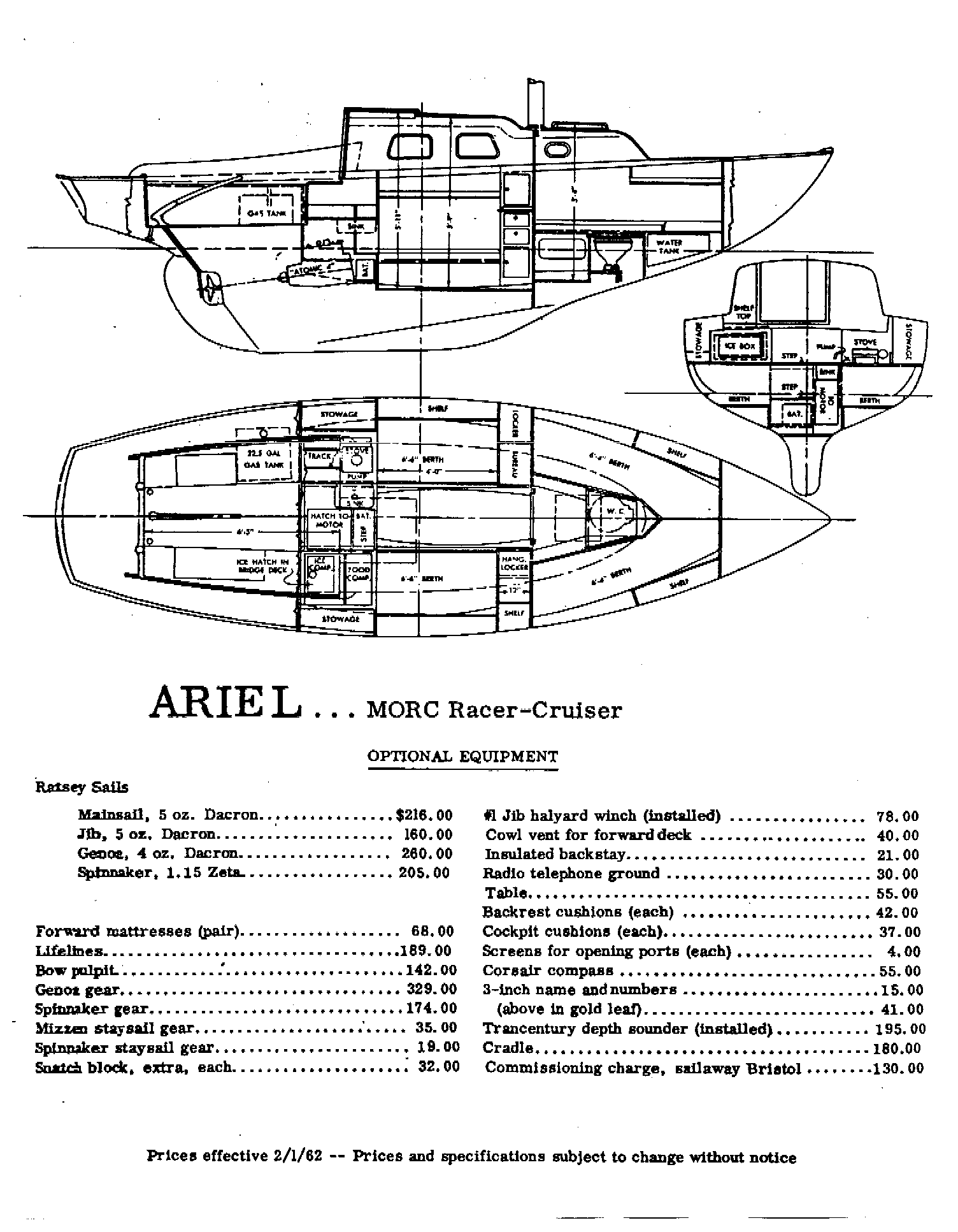 For the skipper who wants a lively racing machine that knows her way to the winner's circle. Ariel is a very smart buy indeed.