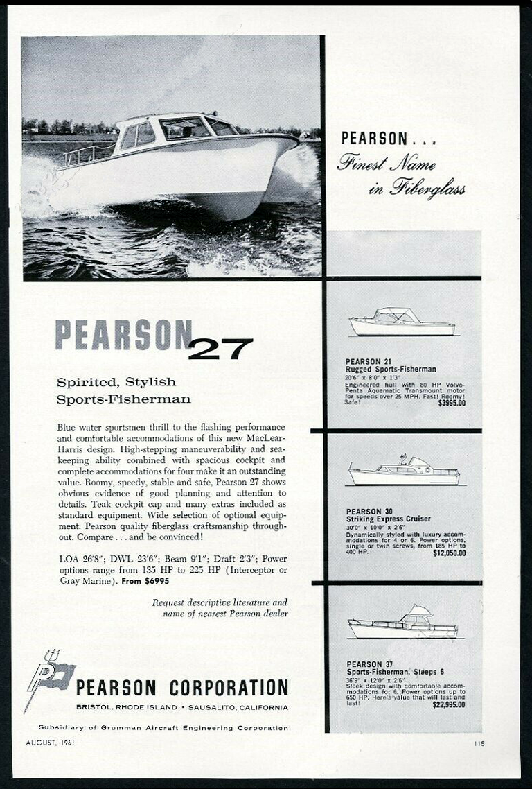 Sports-Fisherman | 26.8' | 9' 1" | 2' 3" | 7000 | 225 HP | 1960 MacLear and Harris | Brochure |