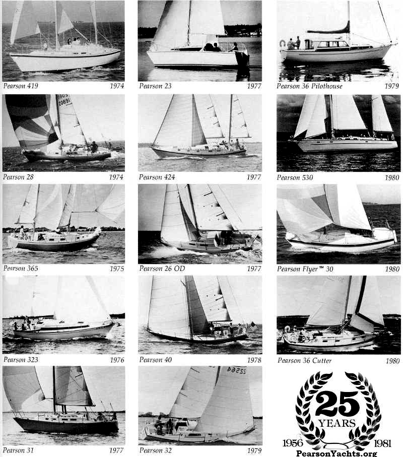 A new generation of cruising auxiliaries began in 1971 with the Pearson 390, and continues today with the Pearson 530. This family of pure cruising designs is designated by three digits, and to date more that 1,000 of these models have been produced.