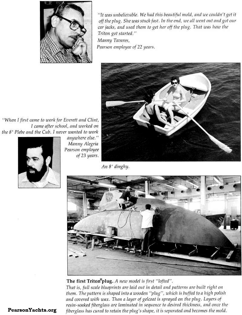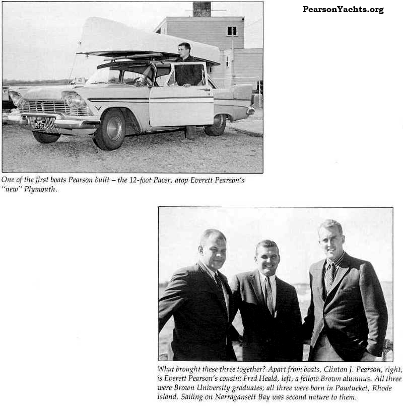 When Clint Pearson, his cousin Everett Pearson, and fellow Brown alumnus Fred Heald started out, their quarters were the basement of the old Collins & Aikman textile plant on Constitution Street in Bristol, Rhode Island. They experimented with glassing techniques and resin formulae as they went along. The worked on the boats alongside their employees, and inspired a good deal of devotion in so doing. Did they struggle? Of course. Did they work hard? Naturally. Were their effors rewarded? Read on!