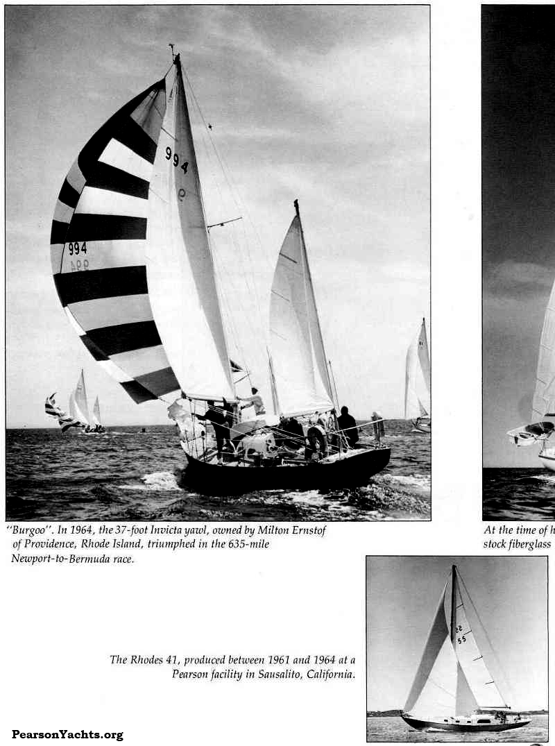 Pearson's 37-foot yawl Burgoo waltzed off with the trophy for the 1964 Newport-to-Bermuda race. When Burgoo won first place on corrected time, it was the first time a fiberglass auxiliary yacht had won sailing's most prestigious race.